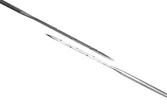 三維模壓成型的G型和GB型鉤刺可延長(zhǎng)刺針的壽命。常用無紡刺針每一棱帶三個(gè)鉤刺,在一些用底布材料的特殊用途上,只在一棱或兩棱上帶鉤刺。彎柄方向可以是偏左或偏右以縱向或橫向保護(hù)底布材料,將損害減至最低,無紡刺針的方向視帶鉤刺棱邊的位置而定。